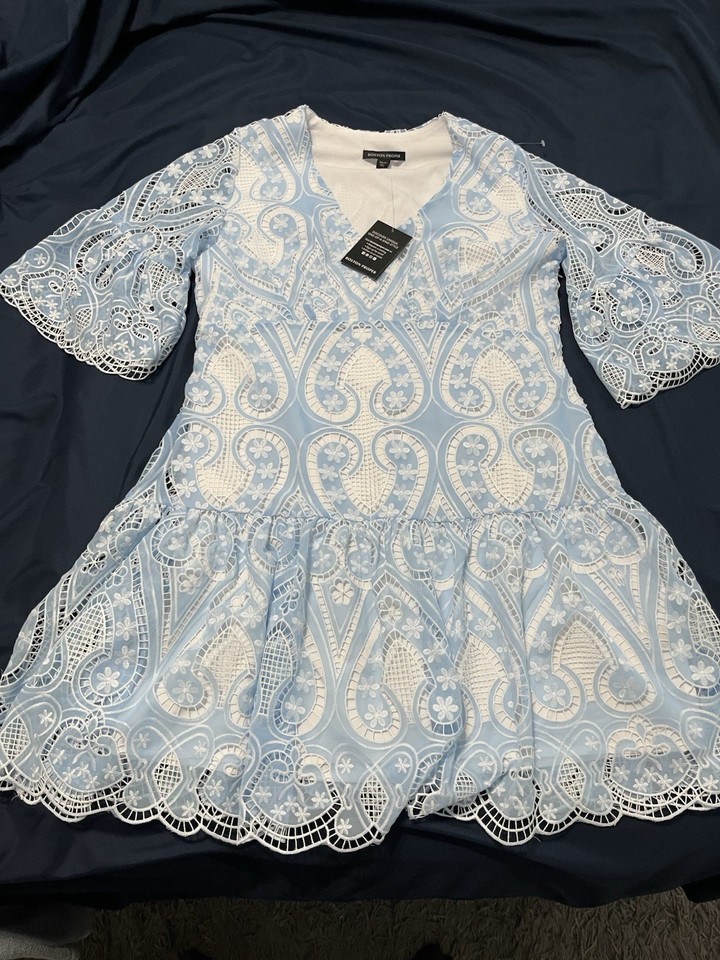 Boston Proper Floral Lace Overlay Blue/white Tunic Dress Size 14 (0623-mm)