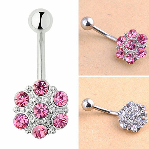 SEXY beautiful Flower Belly Bar Button Piercing Belly Navel Bar Body pink clear