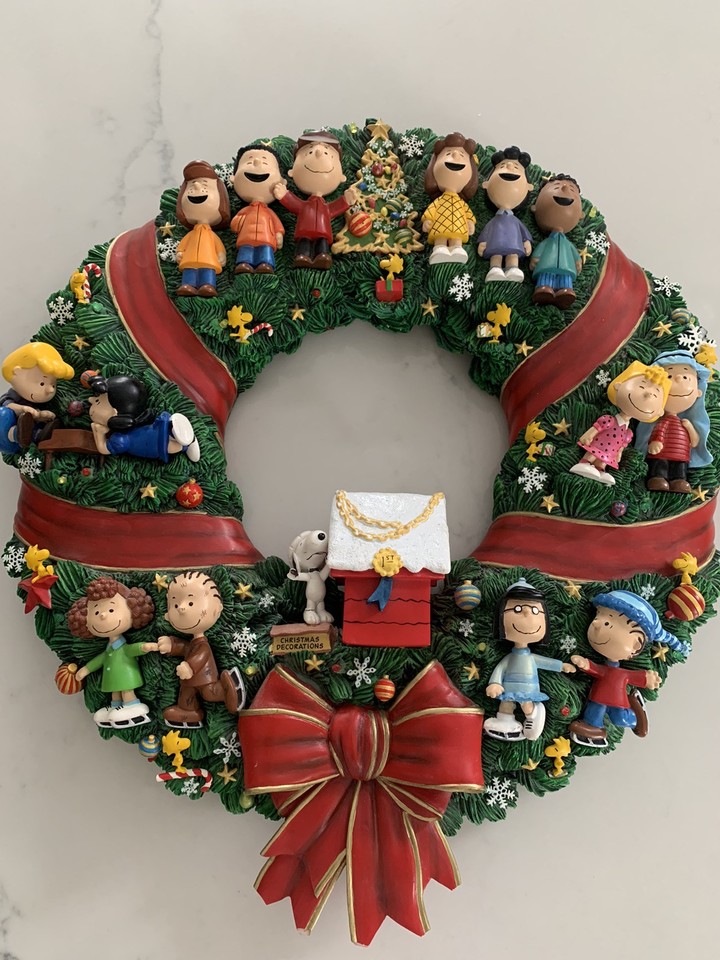 Rare Danbury Mint Peanuts Snoopy Christmas Wreath Charlie Brown Lighted READ