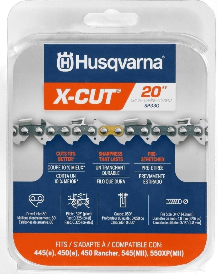 Husqvarna 20" X-CUT SP33G, .325" pitch, .050 gauge 80DL Chainsaw Chain 581643680