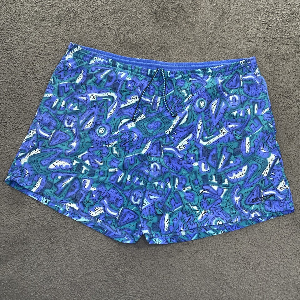 VTG Speedo Board Shorts Swim Short Trunks Men Large Mesh Lined Blue Art Abstract