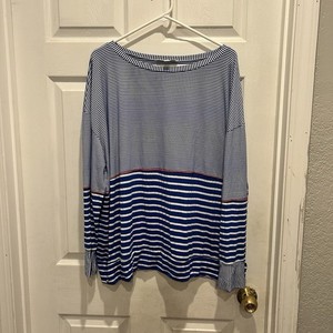 Weekend Suzanne Betro Striped Boat Neck Long Sleeve Top Plus Size 3X Blue White