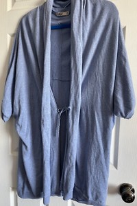 LEMON Brand Women's S/M Oxford Robe Sweater Knit Spa Gray Ivory Retail $128
