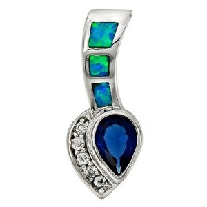 Treated Blue Sapphire & Australian Opal Inlay 925 Sterling Silver Pendant GA9 EUR 9.550 bids2d 7h 46m