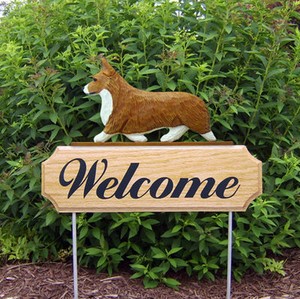 Corgi Wood Welcome Outdoor Sign Red Pembroke