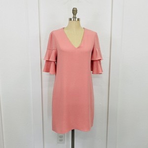Charles Henry Women’s Shift Mini Dress Small Pink Ruffle Sleeves Rose Gold