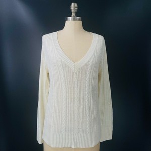 Aeropostale Knit Sweater Junior's XL White Cable V-Neck Long Sleeve Streetwear