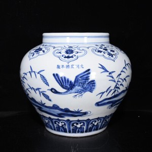 Collectable Beautiful Chinese Hand Blue&white Porcelain Bird pot