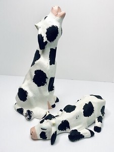 Kitsch COW Statue Ceramic Sculpture Set Scioto Mold Moo Figurine Farmhouse Decor