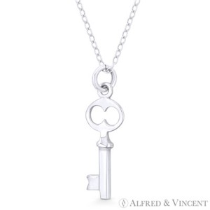 Skeleton Key-to-Heart Love Charm Pendant & Chain Necklace in 925 Sterling Silver