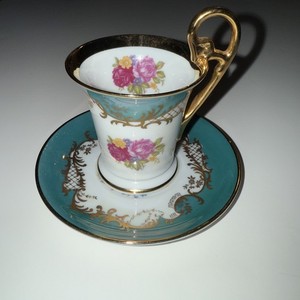 Vintage Porcelain Demitasse Cup Saucer 22k Gold Detail Floral KPM Berlin Germany