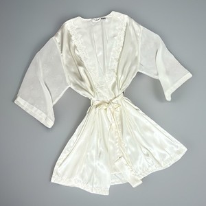Vintage 1970’s Van Raalte Ivory Satin Short Robe Size Medium Sheer Sleeves