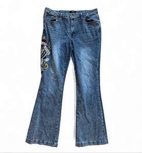 Womens Ed Hardy Denim Brave Heart True Eagle Embroidered Wide Leg Jeans - Sz 32