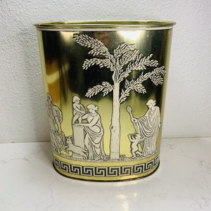 Vintage Weibro MCM Grecian Style Embossed Metal Waste Bin Trash Can White & Gold