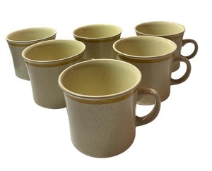 Vintage Yellow Gold Garden Festival Stoneware Coffee Cup Mug 10 oz. Set Of 6