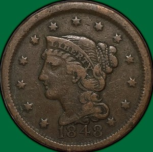 1848 Braided Hair Large Cent Very Fine VF Coin #29532
