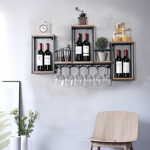 Wall Mounted Wine Rack Dining Restaurant Bar Metal + Wood Vintage Bottle Rack