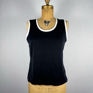 Talbots Petites Black White Trim Tank Top Sz PM Medium 100% Cotton Sleeveless