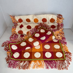 Pier 1 Imports Table Runner Vibrant Fringe Polka Dot Rick Rack Shabby Chic Boho