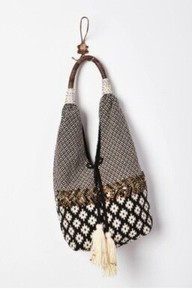 Jasper & Jeera Karina Hobo Tote Bag Ikat Geo Tapestry Black Ivory Anthropologie