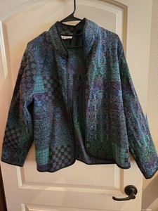 1X Serengeti Patchwork Tapestry Jacket Stand Collar Contrast Trim Blue/green