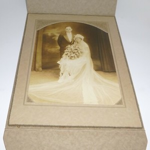 1930’s Wedding Photo Bride Groom tulips dress folder Fonfarra Studio Chicopee MA