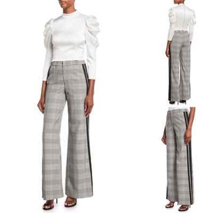 Alice + Olivia Bo Side Stripe Wide Leg Plaid Pants Women's Large NEW $395