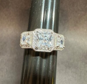 SU GM Cubic Zirconia Engagement Ring Pave Band Silvertone Size 8.25 Italy