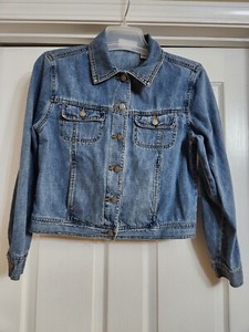 VTG Denim Jean Jacket Women's Size-Med Petite Blue Washed Trucker Bill Blass