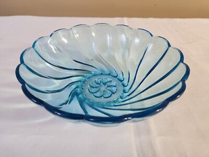 Vintage Hazel Atlas Capri Blue Swirl Pattern Depression Glass 9" Serving Bowl