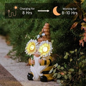 Solar Garden Outdoor Porch Yard Lawn Decor 11.7'' Gnomes Statuesresin Bee