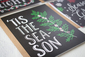 Boxed Christmas Cards with Envelopes - Set of 8 Cozy Chalk Christmas Cards wi...
