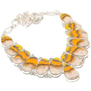 Bumble Bee Jasper Gemstone Silver Plated Necklace Bohemian Jewelry 18"