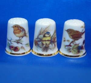Birchcroft China Thimbles -- Set of Three -- Garden Birds