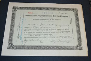 Greenwater Copper Mines and Smelter Company 1913 stock certificate – Death Valle