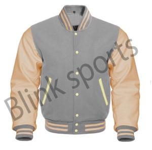 Letterman Baseball Varsity Bomber Grey Wool Body & Cream Leather Sleeves jackets