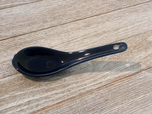 Ceramic Blue Spoon Asian Soup Deep Porridge Multi-function Scoop 4.75"