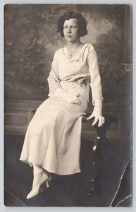 Postcard RPPC Young Woman Portrait – Flapper Era Dress Gloves Heels Bobbed Hair