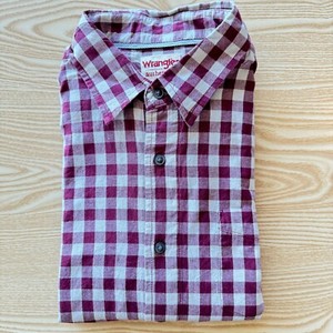 Wrangler Large Shirt Mens Purple White Check 24" Pit-to-Pit Designer Fashion Men