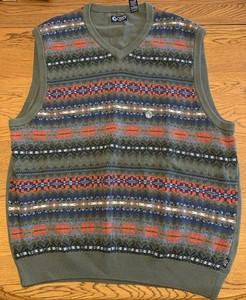 Chaps Sweater Vest 2XL Green Print Knit V Neck Casual Cotton Mens NWOT F61