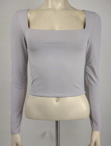 Babaton gray stretchy square neck long sleeve cropped top ladies Medium