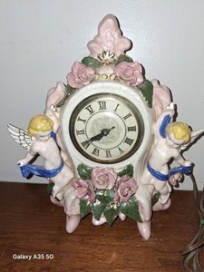 Vintage Lanshire Angeles Ceramic Clock Deco Cherubs Electric Works! 11.5H X 8L