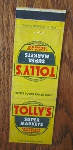 TOLLY'S SUPER MARKETS DECATUR & SPRINGFIELD, ILLINOIS, MATCHBOOK MATCHCOVER -F9