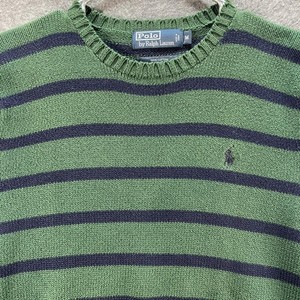 Polo Ralph Lauren Sweater Mens Medium Green Navy Striped Crewneck Pullover