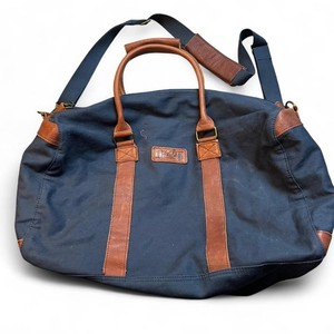 Duluth trading company navy canvas duffle bag with leather accents medium size