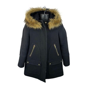 J.Crew Chateau Parka Italian Stadium Cloth Nello Gori Wool Size 4 Black Faux Fur