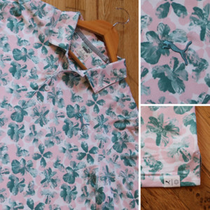PUMA Men's L Pink Floral Print Golf Polo Shirt Performance Tropical Stretch Logo