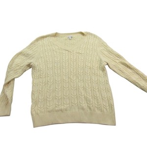 Croft & Barrow Women's Cable Knit V-Neck Sweater XL Extra Large Cream Cotton