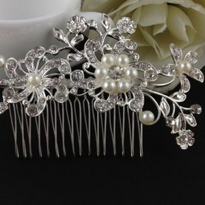 Crystal Rhinestone Wedding Flower Pearls Hair Clip Comb *1 Bride Q7U1