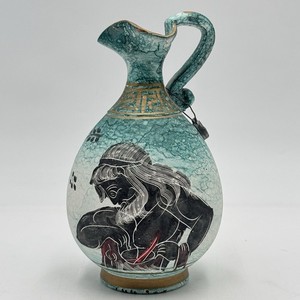 Greek Pitcher Bud Vase Hand Made Hand Painted Poseidon Teal Gold Greece 5.5x3”